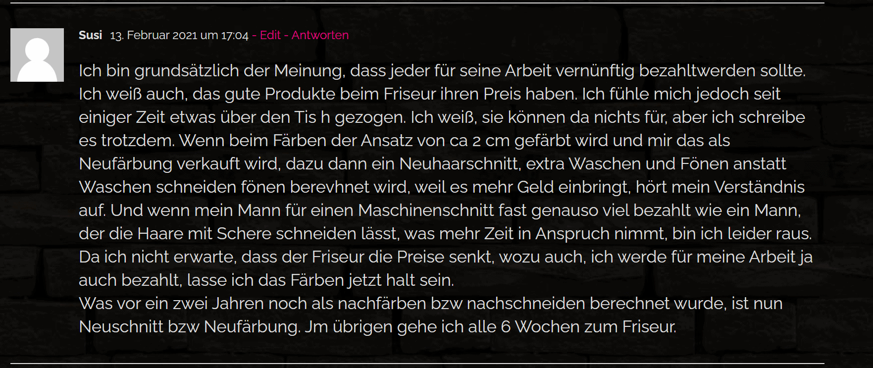 Die Antwort auf einen Kommentar zu meinem Beitrag Was!? “SOOO” teuer? Friseurpreise im Preisvergleich!