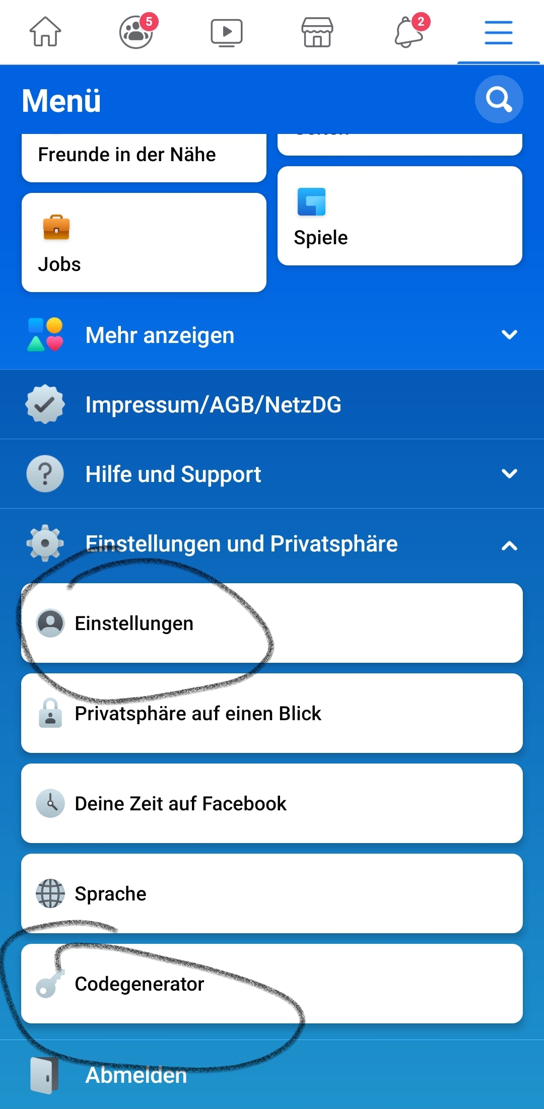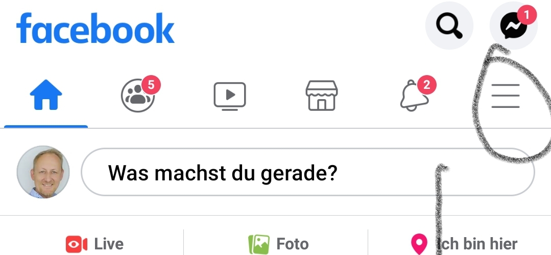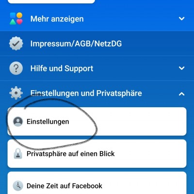 Als erstes gehen wir in die Facebook-Einstellungen – folge der Bildanleitung –